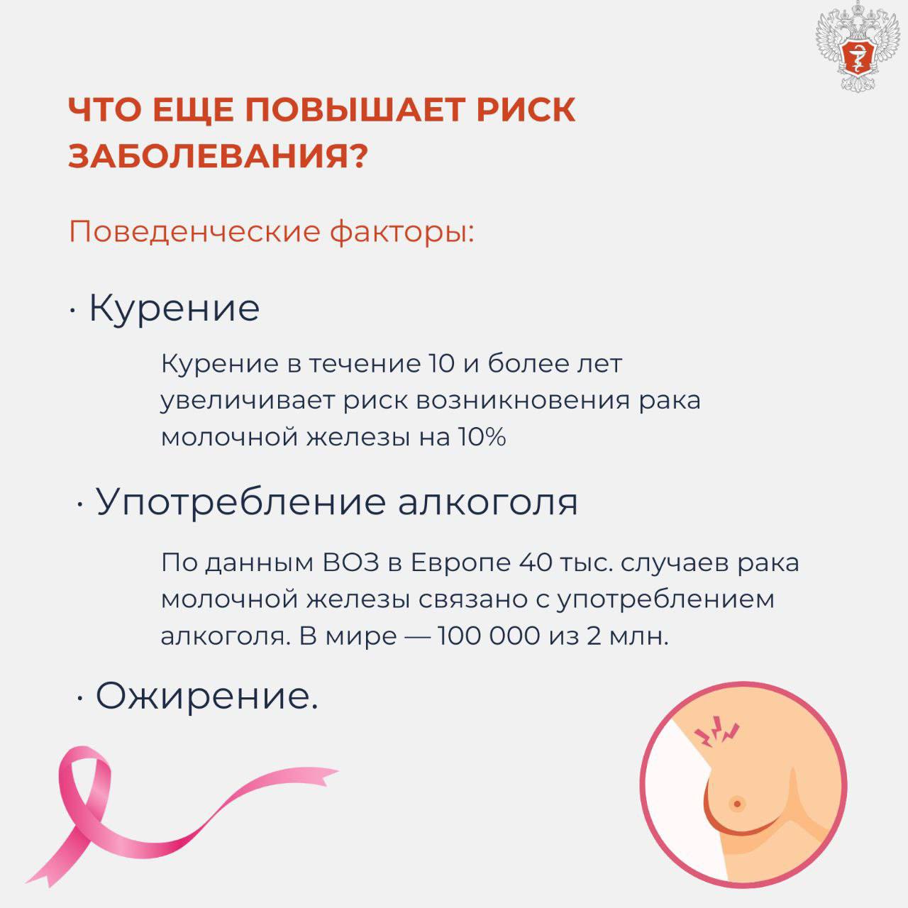 Есть несколько факторов, увеличивающих риски возникновения рака груди: